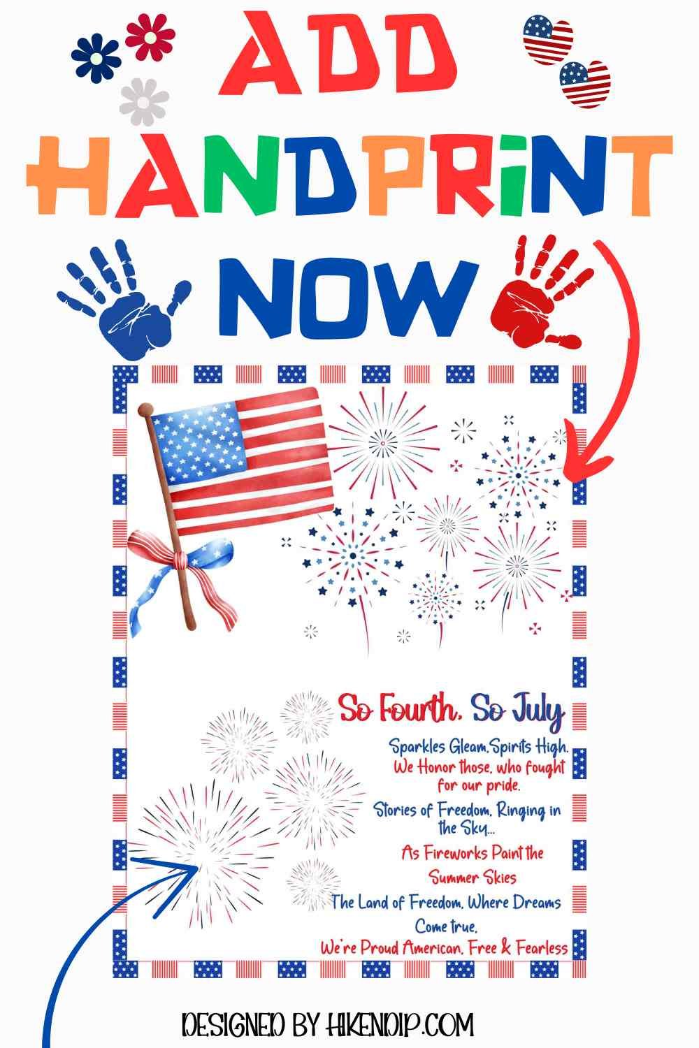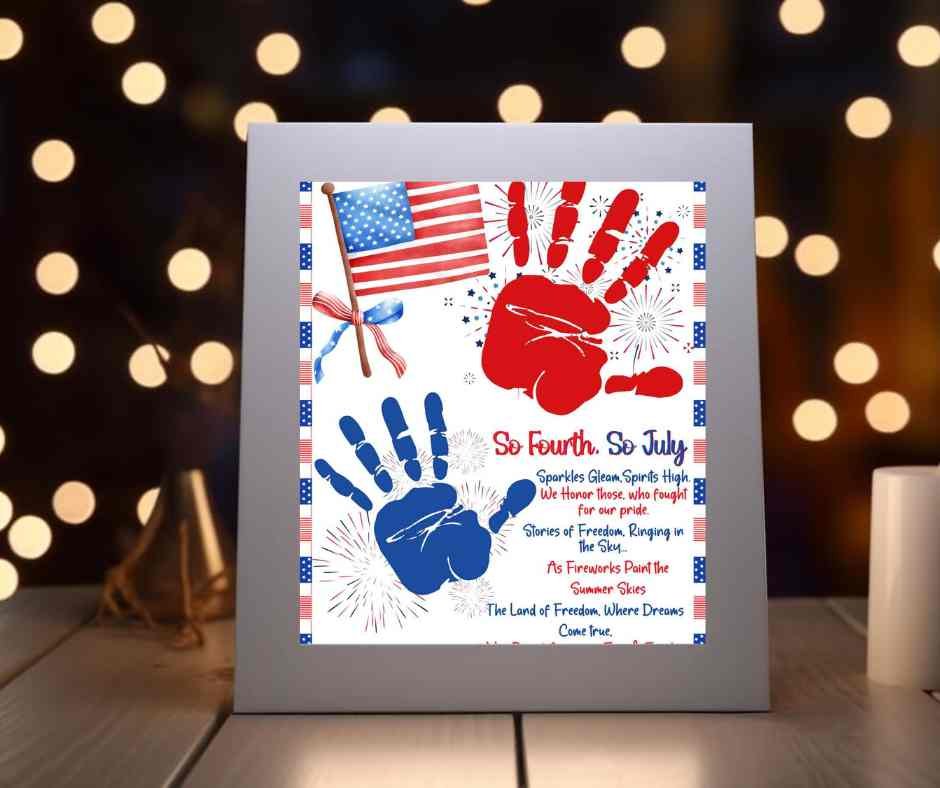 4th of July Handprint Craft for Kids - So Fourth, So July. An easy and cute Handprint Craft for Kids that gets done in no time. This is more than a Handprint craft for Fourth of July. This is a beautiful keepsake and is way more than a DIY Project.