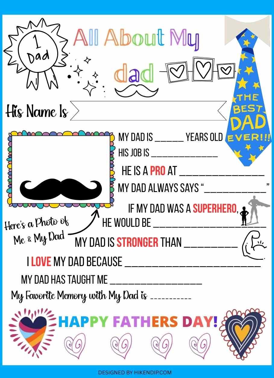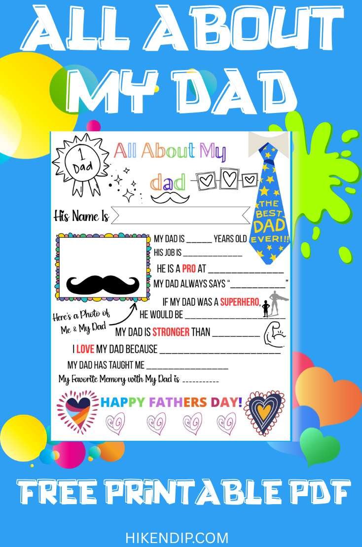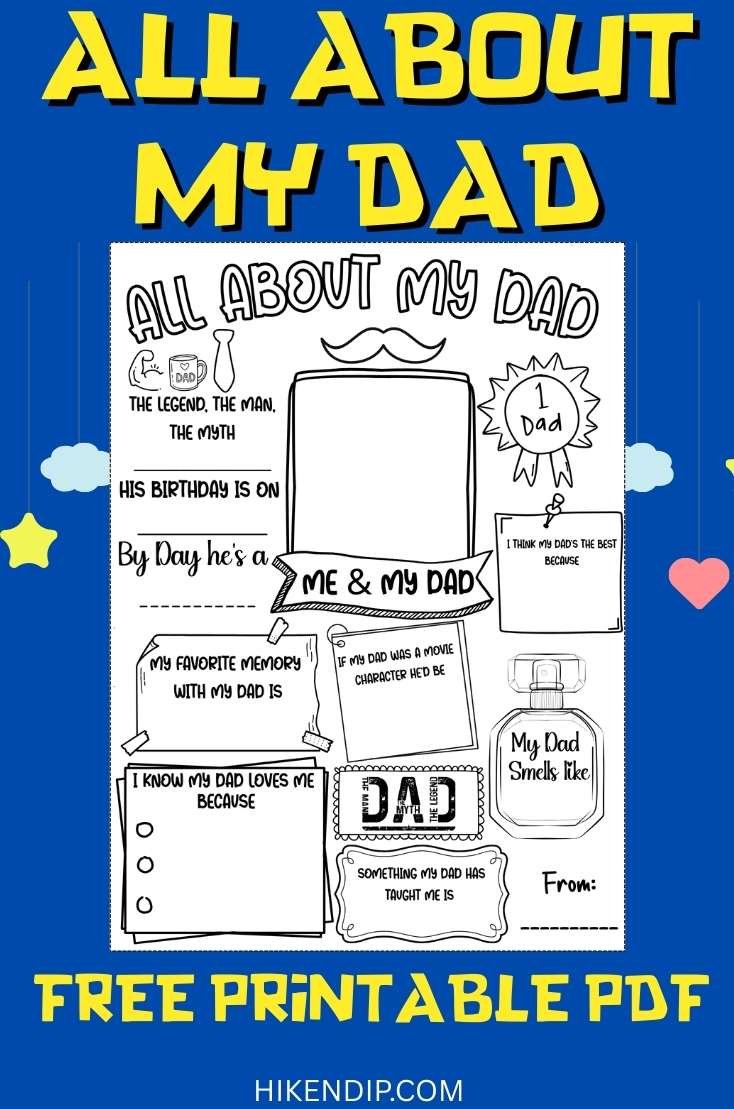 I've created three sweet and adorable 'All About my Dad Printable PDF' that is available to you for Free. It's the easiest DIY Father's Day Gift ever.