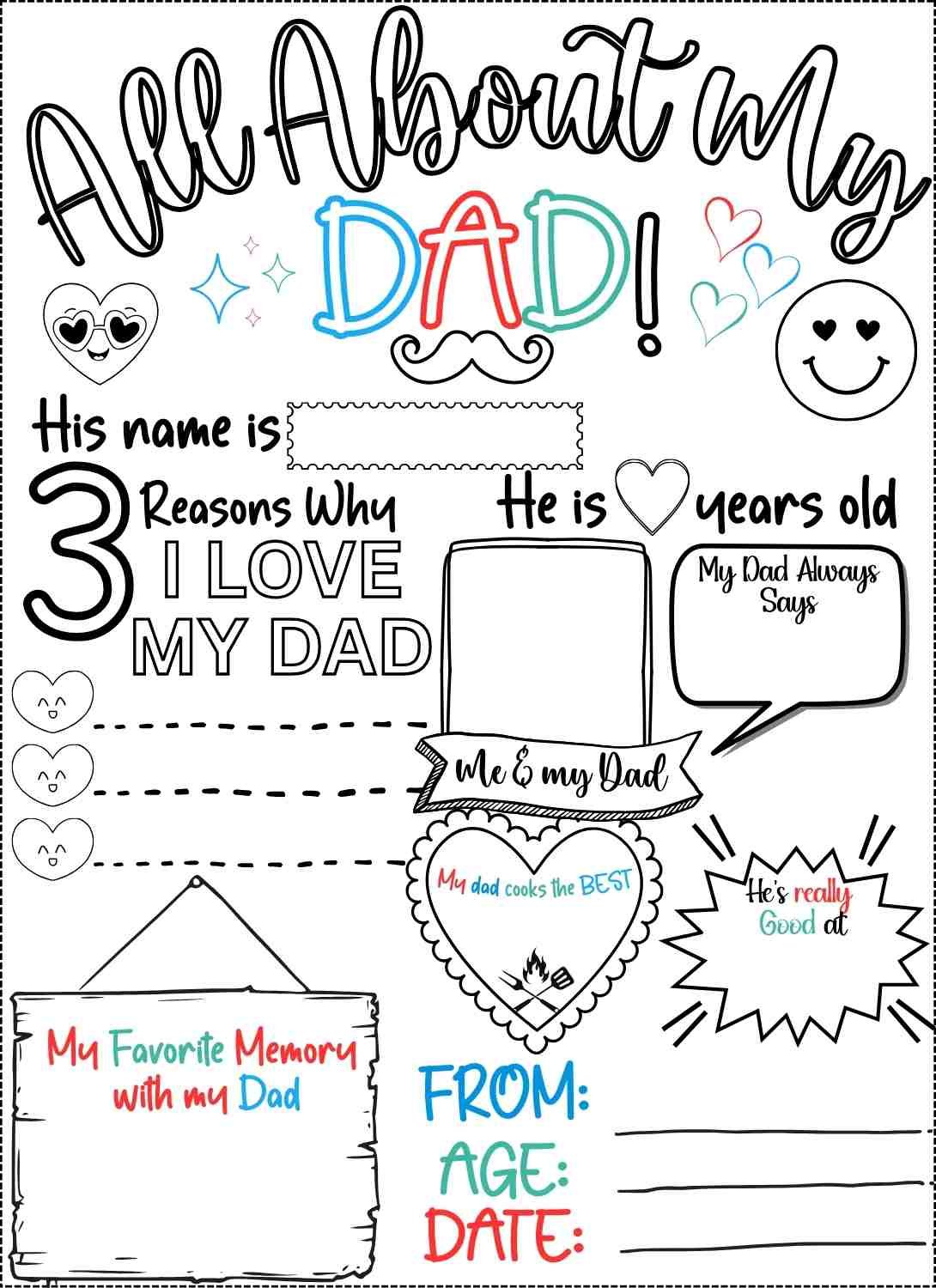 It will look more colorful and vibrant when kids will color this and I can imagine the teary eyed Dad receiving this printable and feeling his heart overflowing with warmth and love.