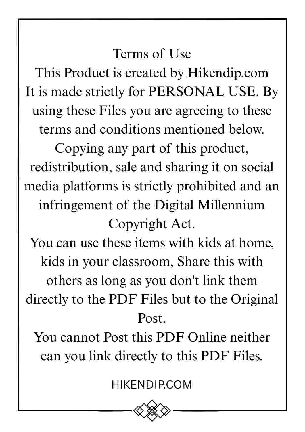 Terms of Use - You can only use this printable for Personal Use. You can't sell it or redistribute it, claiming it as your own.