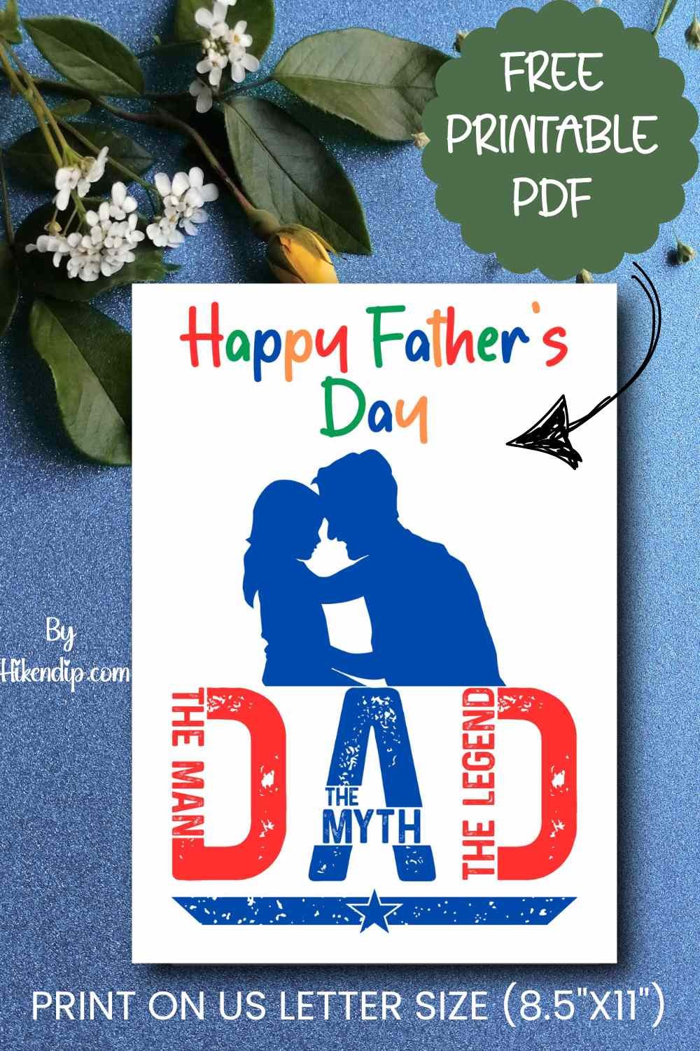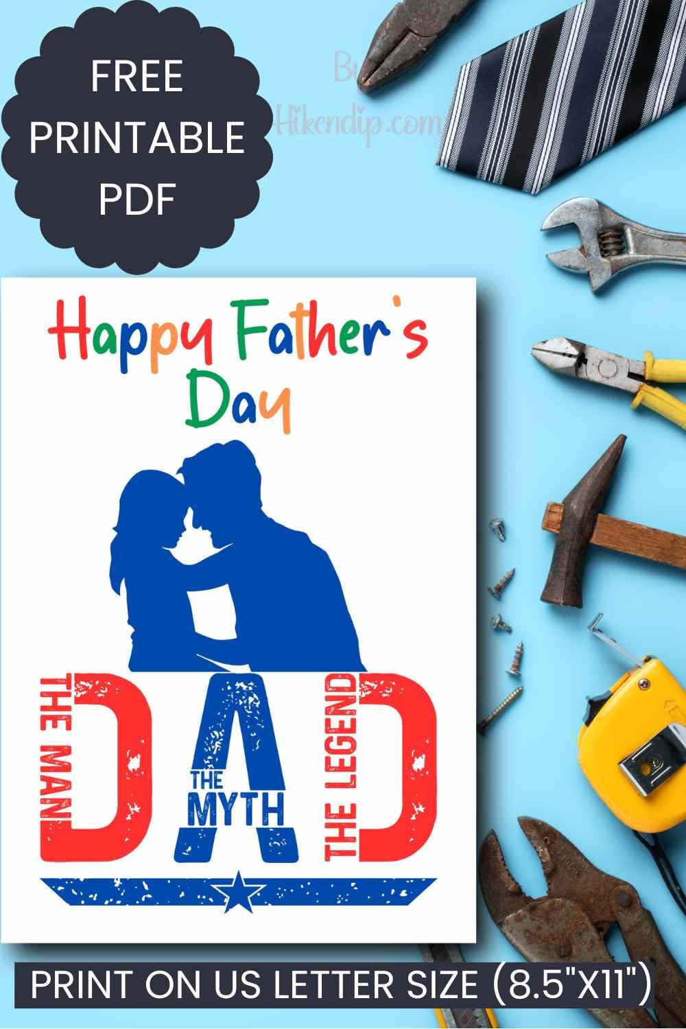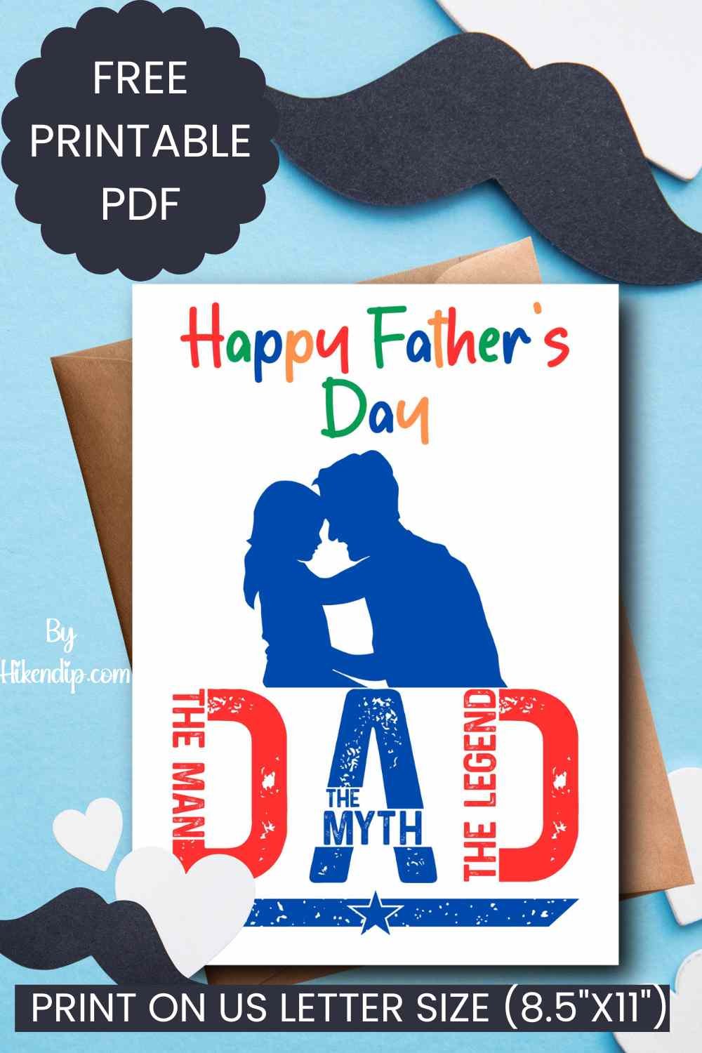 Handmade DIY Father's Day Card Free Printable PDF that you can download for free at home and print on a standard US Letter Size 8.5"x11" then simply cut and fold to a 5"x7" card.